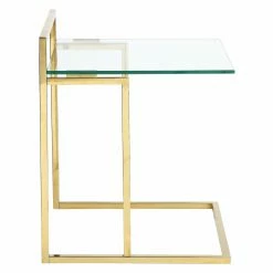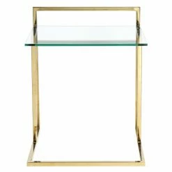 Also known as a C table, the Pangea Home Helen Tray Table is engineered with a foot that easily slides under the side of a sofa or chair. The clear tempered glass top hovers over the arm of said sofa or chair, creating a handy tray for your devices, drinks, and snacks. Steel forms the frame, which is drenched in a lustrous finish in your choice of available color.
