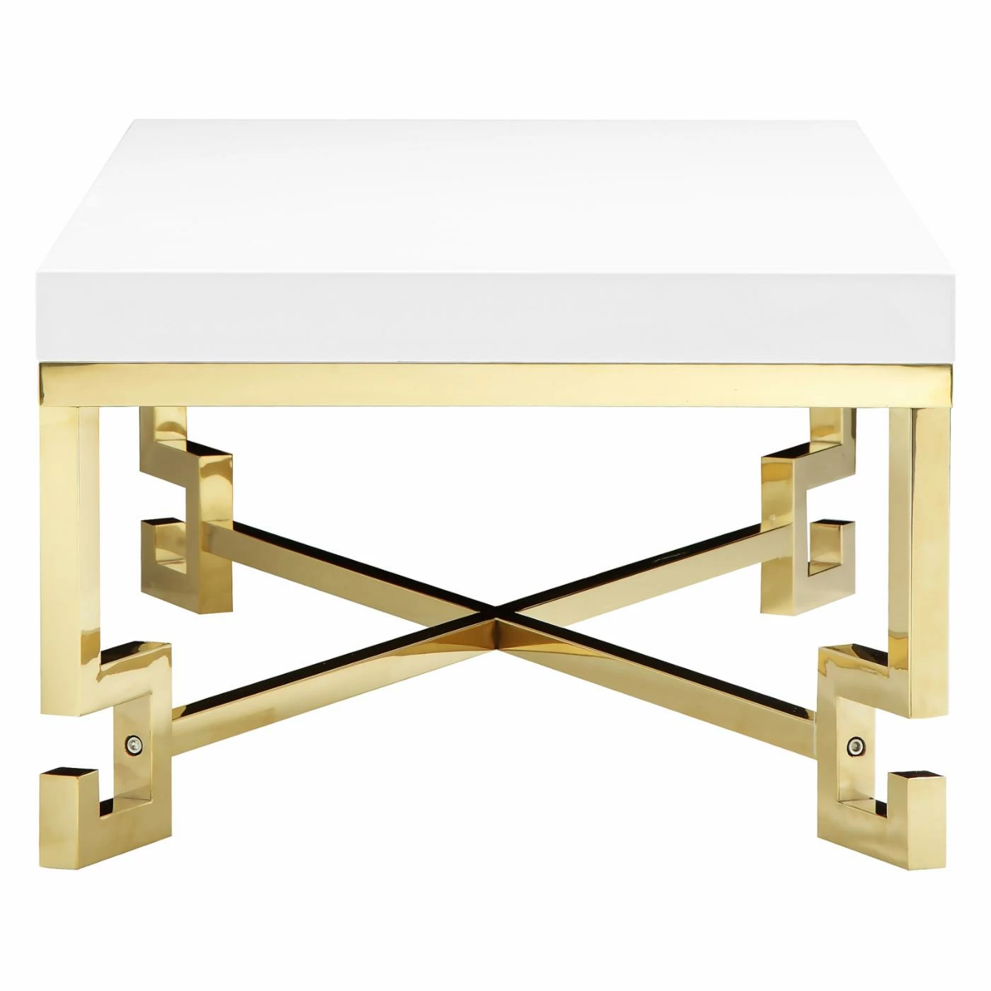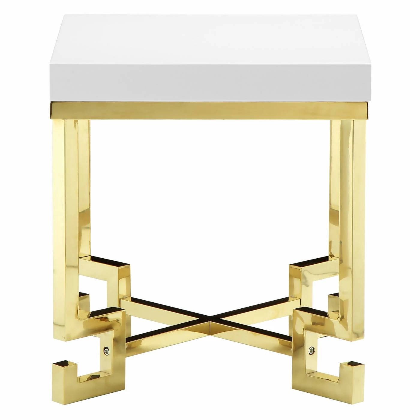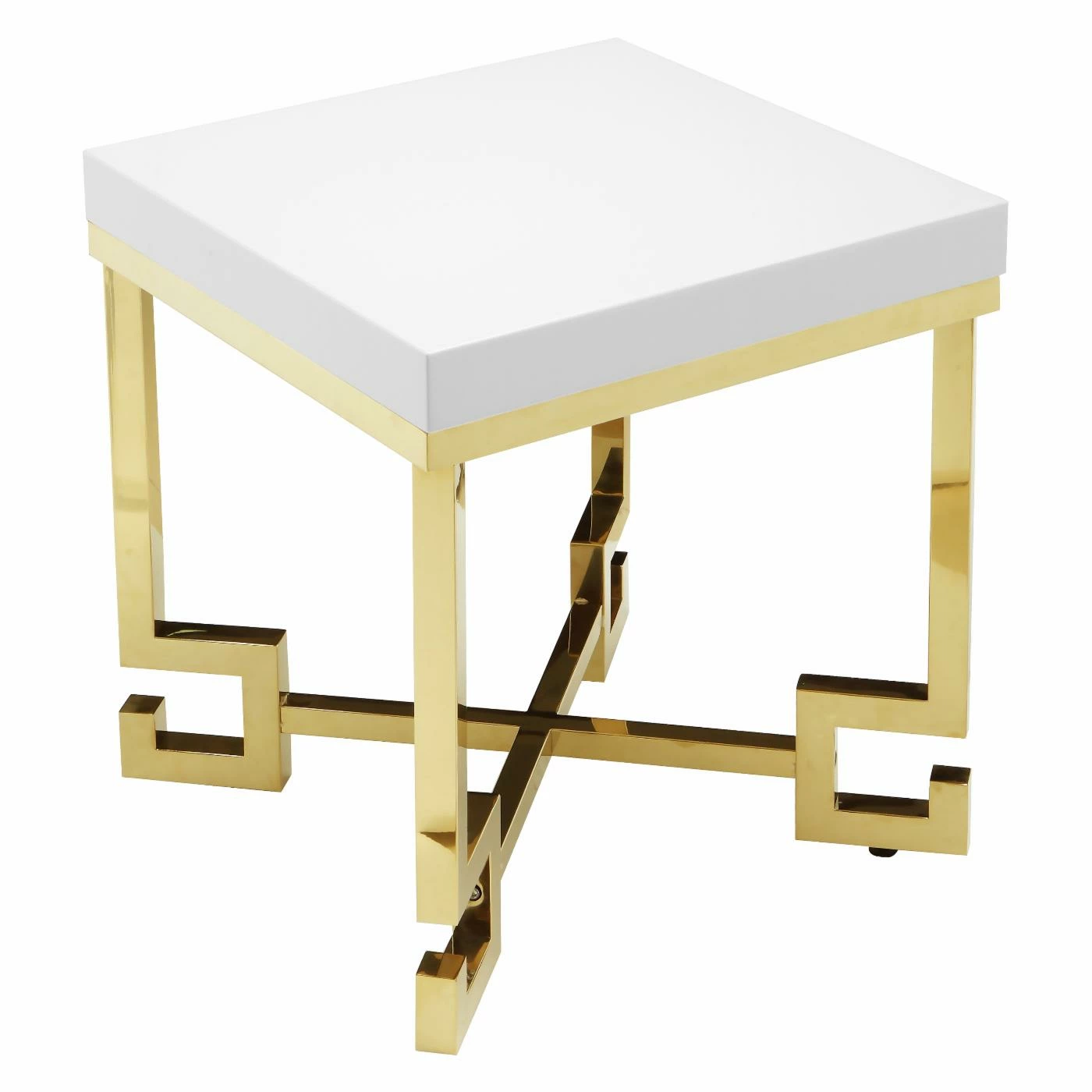 Exuding the right amount of transitional charm with its perfect blend of traditional and contemporary design elements, the Pangea Home Sophia Side Table will complete your living space by adding style and function. Place a geometric lamp on this side table to complement the polished gold legs or a house plant to offset the high gloss, white lacquer top.