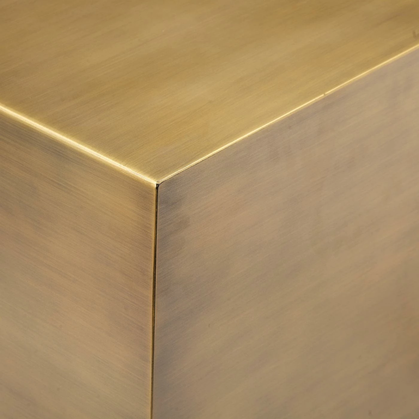 Make a statement with the glamorous brushed brass Pangea Home Spencer Large Side Table. This square side table is made of metal and boasts a clean, linear look perfect for your modern abode.