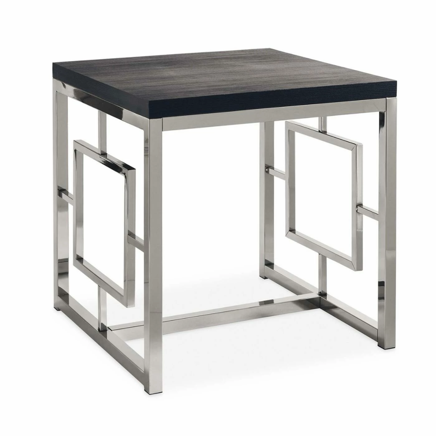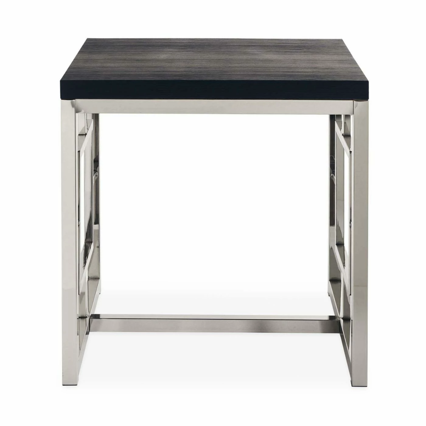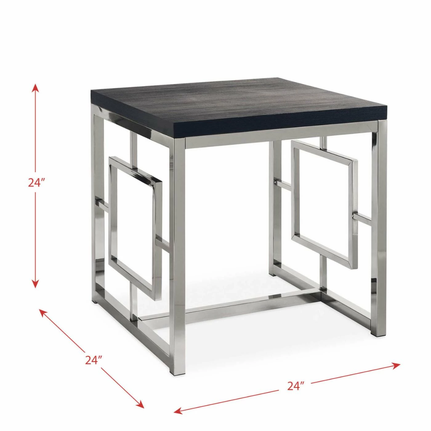 The Picket House Furnishings Harper End Table doesnβt have a problem expressing its modern style. This table features a traditional, geometric pattern on the side that’s given a modern update in the shape of a polished chrome finish. A panel of engineered wood across the top features a laminate coating so it won’t warp or crack over time. This base adds an elegant touch to any well-heeled space. The reflective finish and open design helps to highlight the existing style of your home.