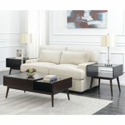 The Picket House Furnishings Morgan End Table gives your space an effortlessly modern appearance. This table is inspired by mid-century modern design with splayed, tapered legs and a minimalist top. The body is constructed from a mix of solid and engineered woods with a veneered exterior under an espresso finish. The top of the table features a thick panel of tempered black glass. This table would be ideal next to your bed, sofa, or favorite chair.