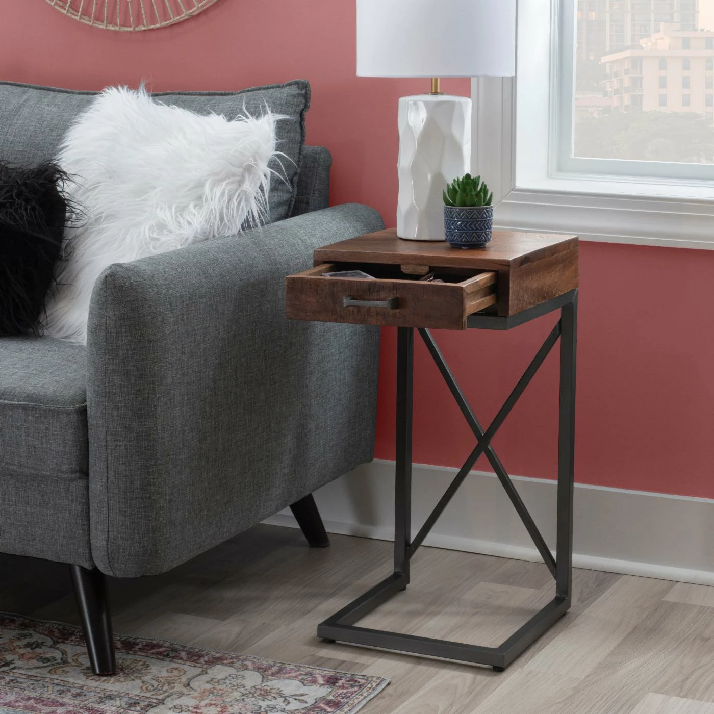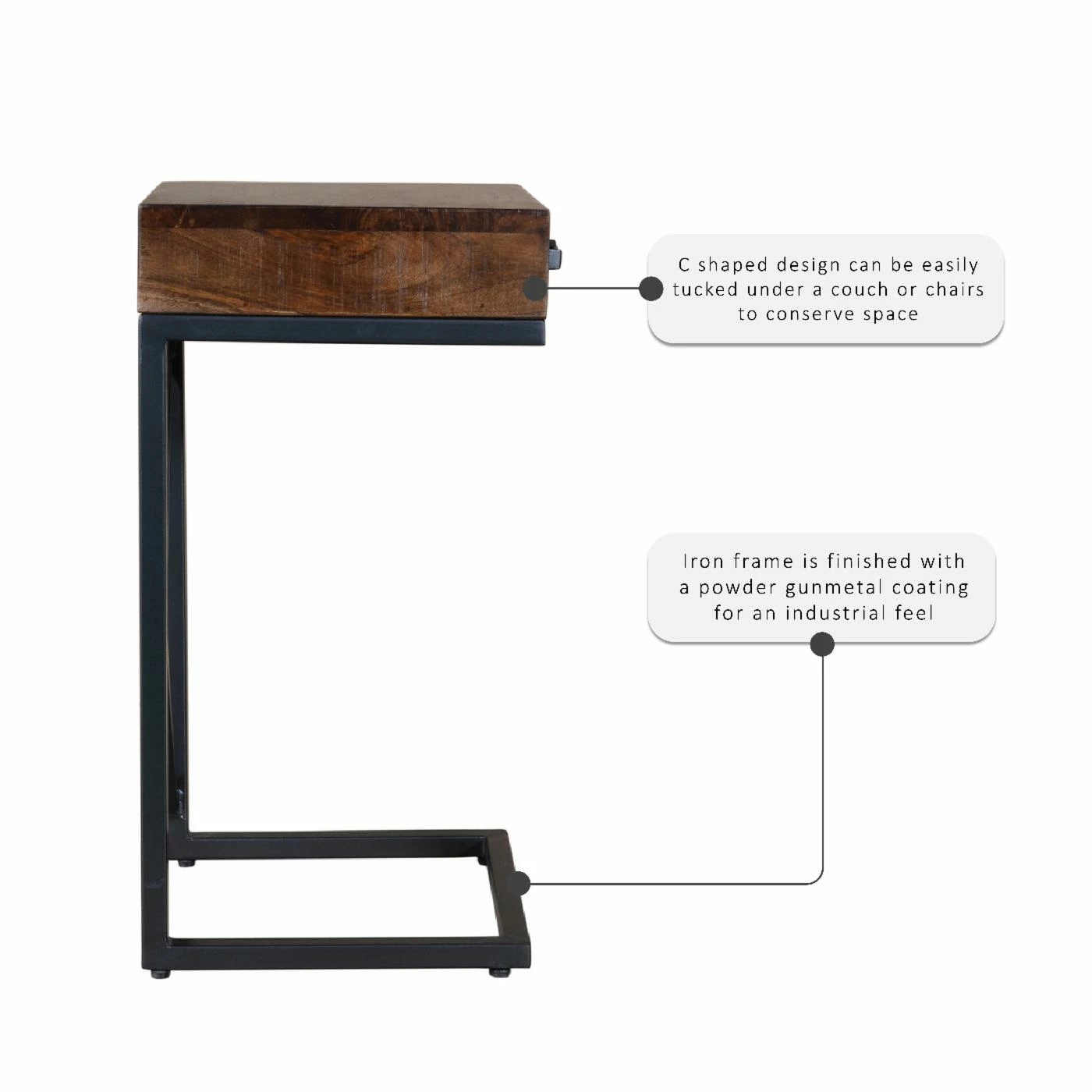 - Powder coated iron frame for an industrial feel