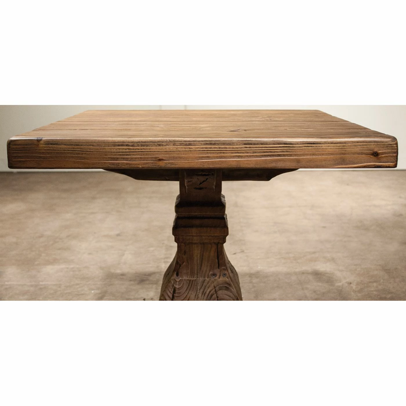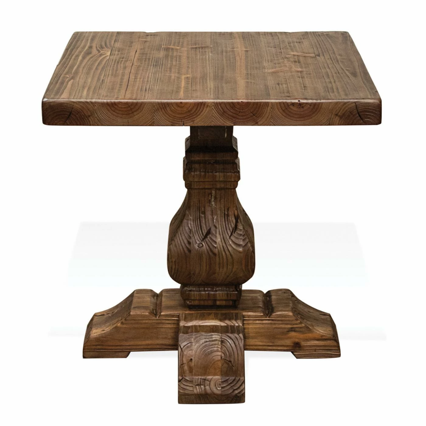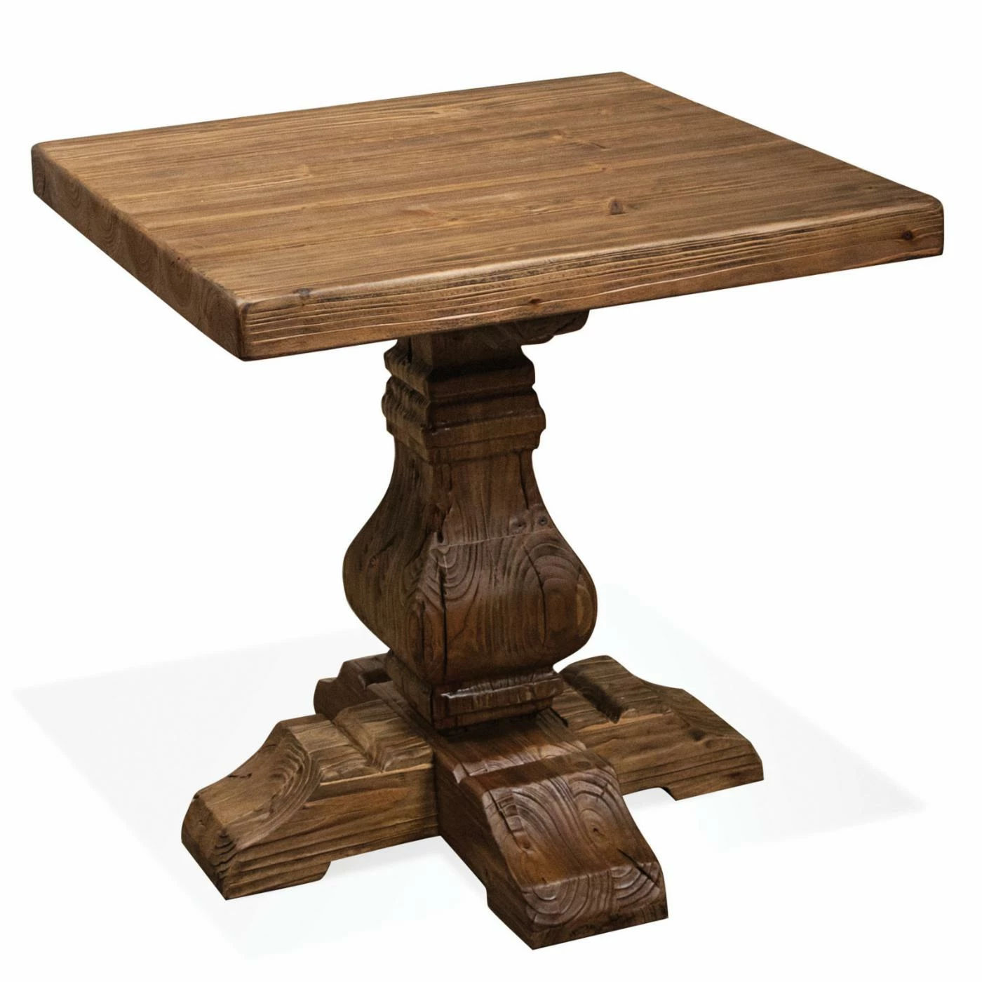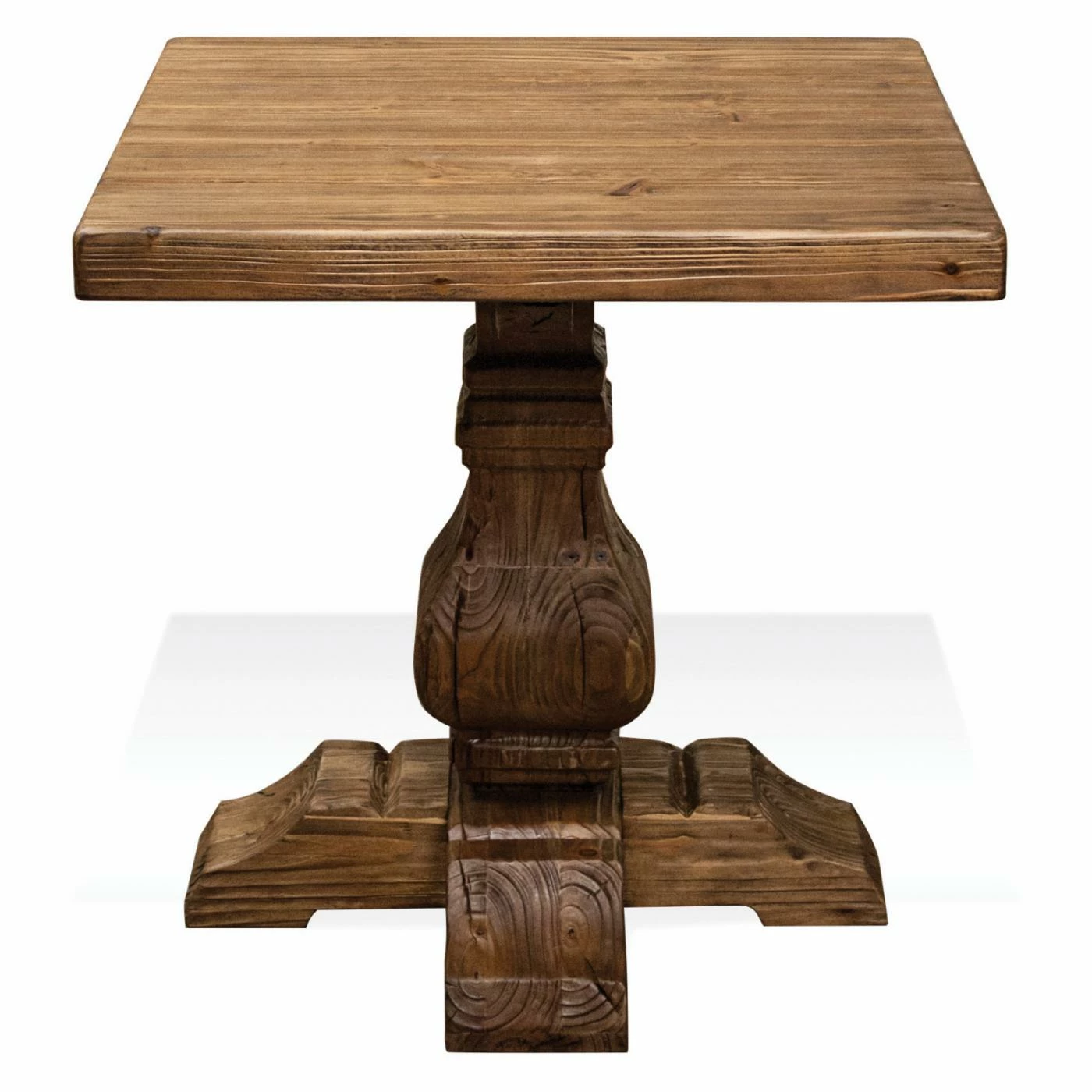 Add a dash of Old World charm to your living room with the Riverside Furniture Hawthorne End Table. This square end table has a solid design built from solid cypress hardwood. The square top is supported by a handsome curved pedestal leg with notched accents and a cross-shaped foot. A rich barnwood brown finish completes the look. This piece look sensational next to a wood-framed sofa or leather armchair.