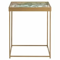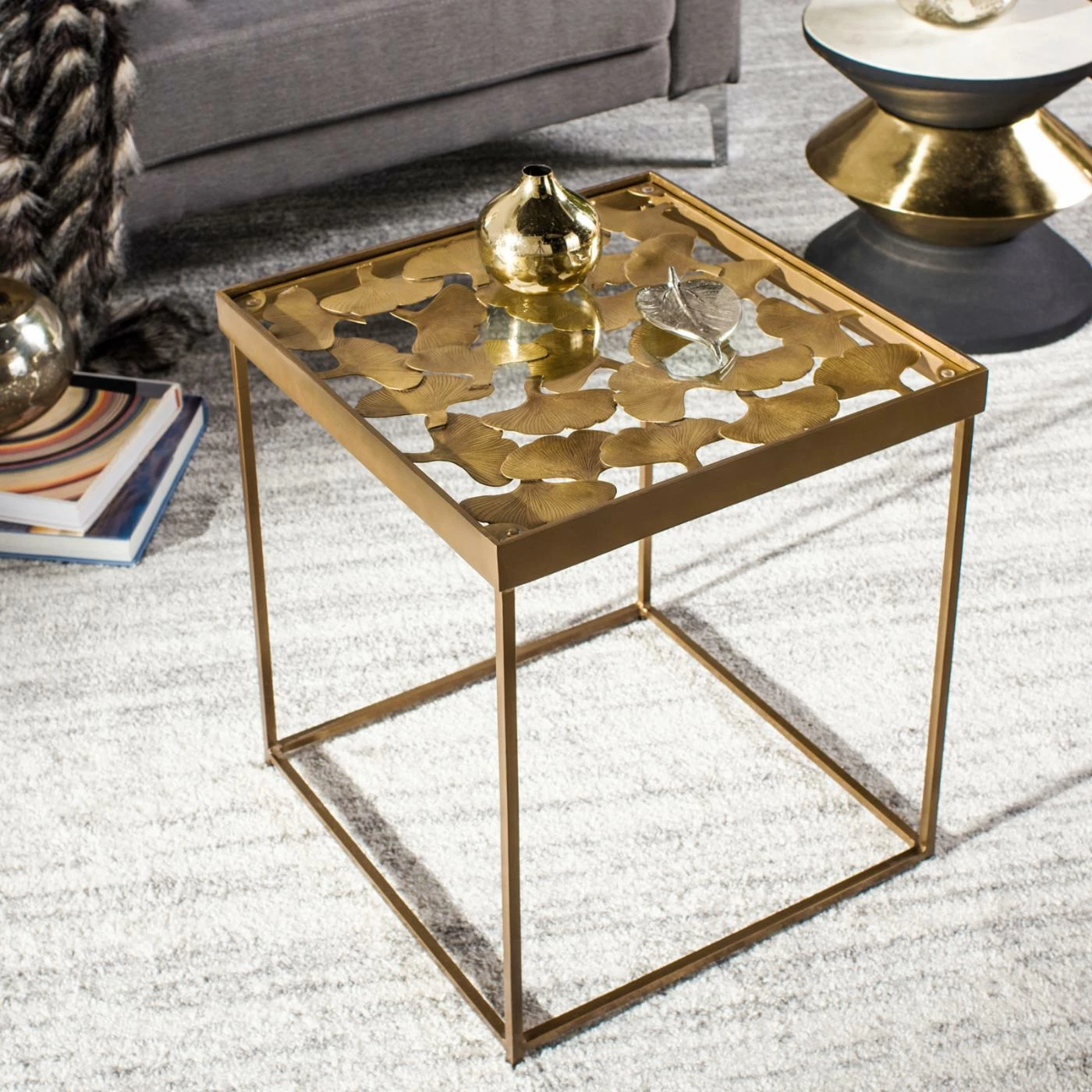 Elevate your minimalist space with the Safavieh Lilian Leaf Side Table. The clean, simple lines of the iron side table blend well with understated contemporary interiors. At the same time, the antique brass finish and gleaming mirrored glass top make an upscale, glamorous statement.
