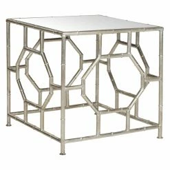 Like the perfect piece of jewelry for your home, the Safavieh Rory Accent Table – Silver/Mirror Top adds elegant sparkle to any room. The Chinoiserie-style design features a metal base with faux-bamboo detail and a vibrant silver finish. The mirrored top provides an opulent, almost regal look to this striking example of modern Asian simplicity.