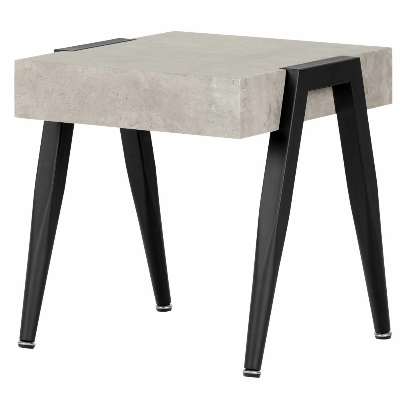 Enjoy modern style in your home with the South Shore City Life Concrete End Table. This end table features a gray faux concrete tabletop crafted with engineered wood. Four metal legs are finished in black and add captivating shape to the table. The faux concrete provides the desirable look of cement without the heavy inconvenience. The table is durably crafted and designed to support up to 75 pounds. It ships ready for assembly. Feature this table as a charming accent in your home.