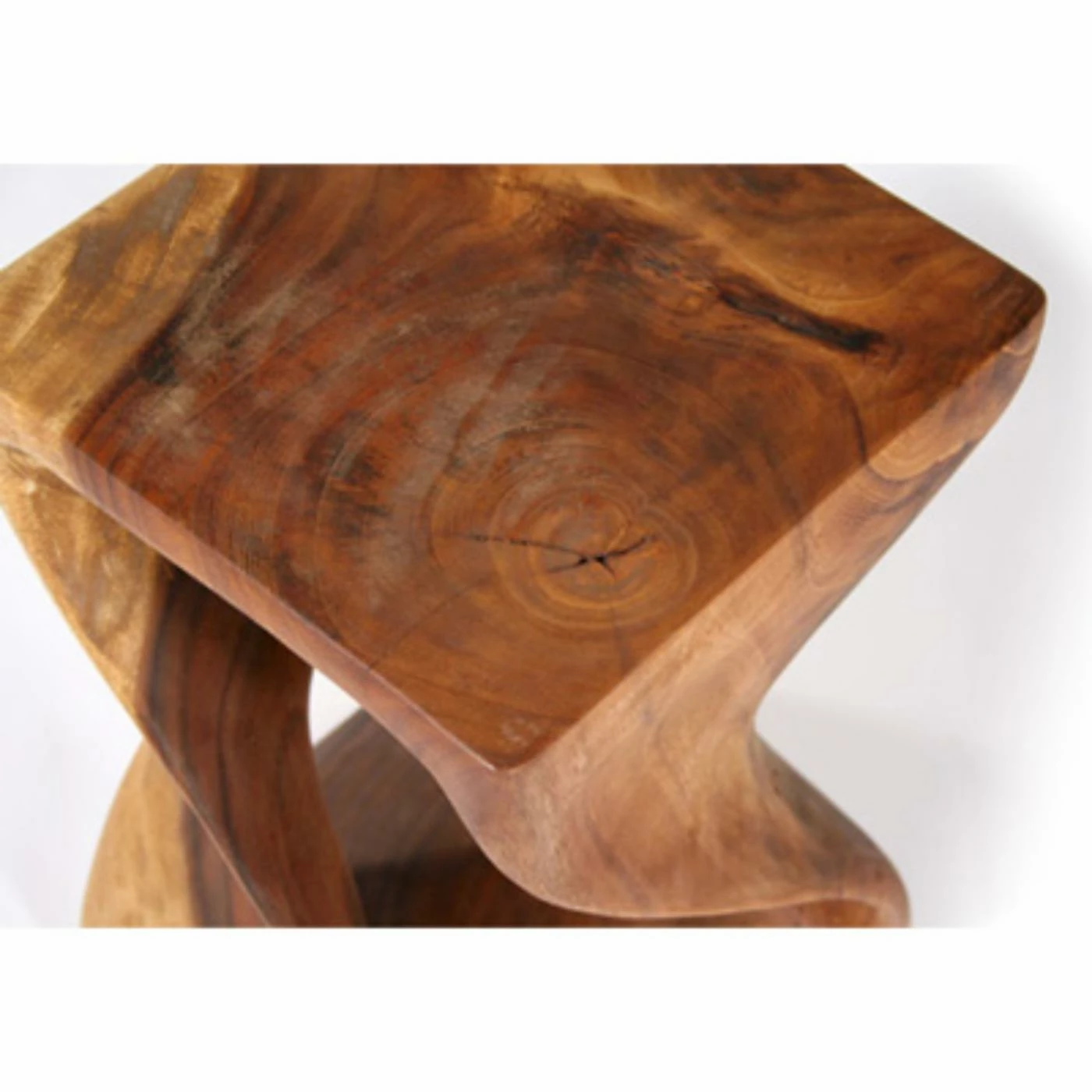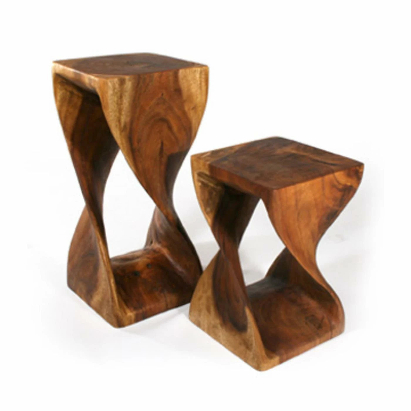 The dramatic look of the Strata Furniture 18 in. Twist End Table makes this piece a gorgeous and unique addition to any living room. Whether your decor is rustic or contemporary, this end table will lend a lovely accent with its natural wood grain beautifully displayed. Hand-carved from a single piece of monkey pod wood, this table is designed to give you years of beautiful use.