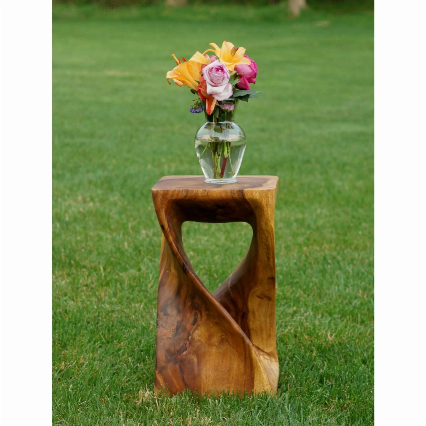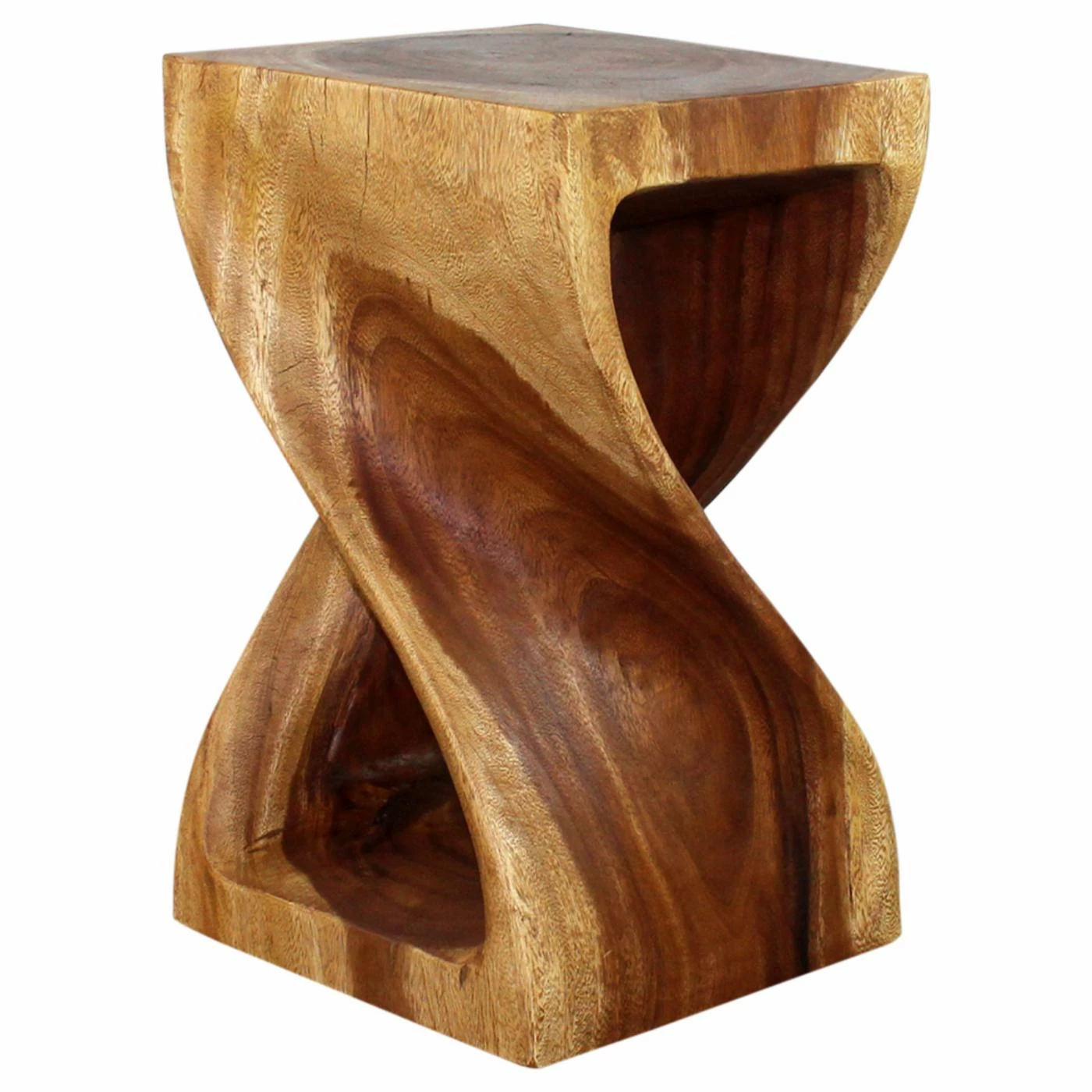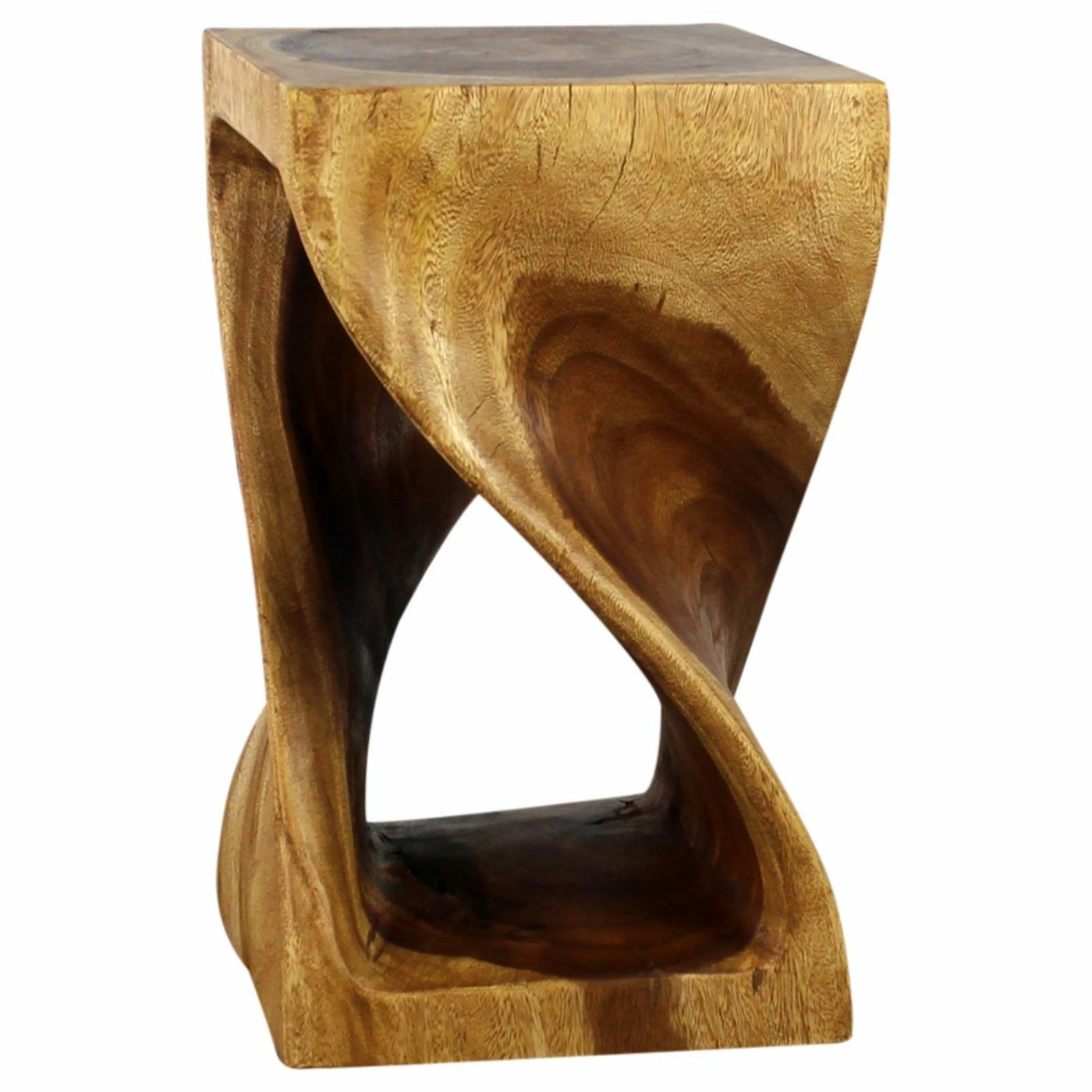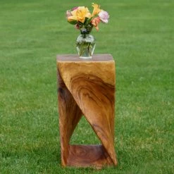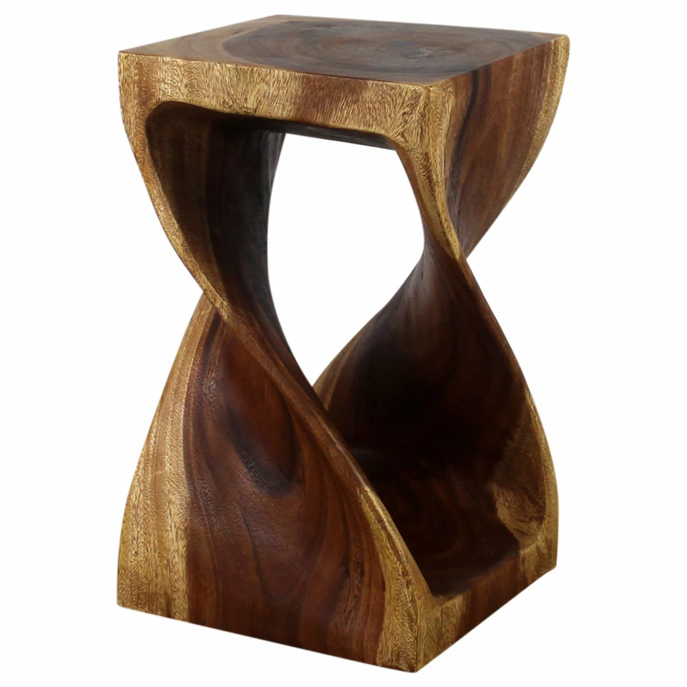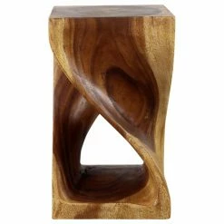 The Strata Furniture 20 in. Twist End Table is as much a beautiful work of art as it is a functional piece of furniture. With a graceful, attention-grabbing twist design carved from a single block of wood, this piece is sure to earn you the compliments of all your guests. Finished in a black walnut oil to highlight the natural wood grain, this end table also works as a stool or display stand, enhancing almost any decor.