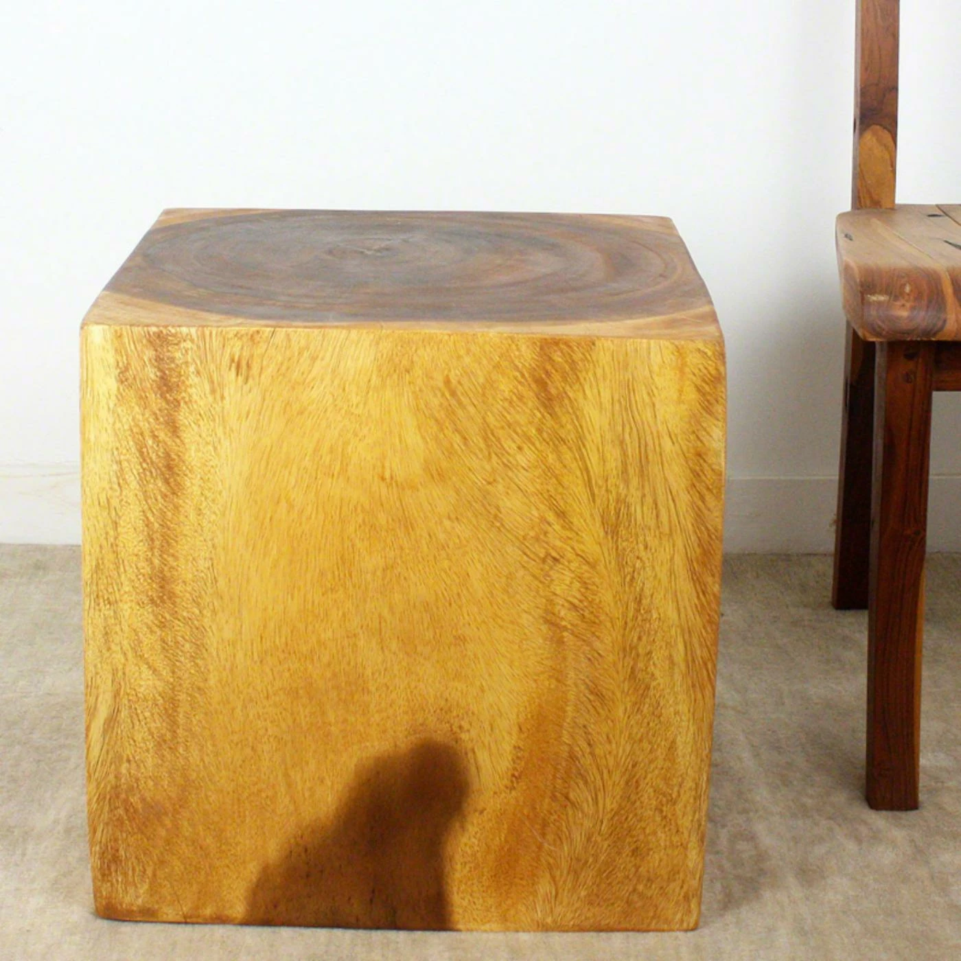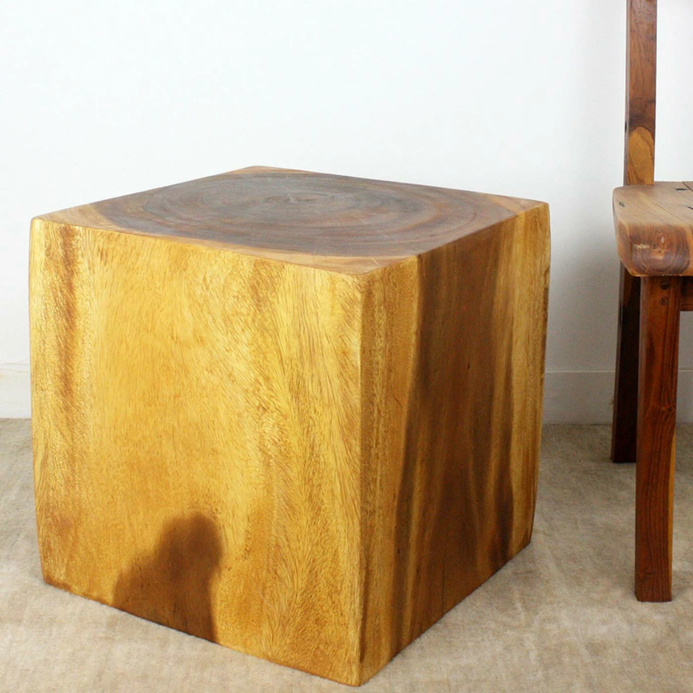 The Strata Furniture Cube End Table – Oak makes a rugged addition to your living space. This handsome piece can be used as a table or seat. It’s carved entirely from sustainable monkey pod wood with a walnut oil finish.