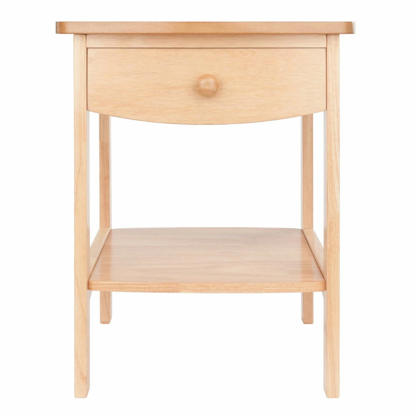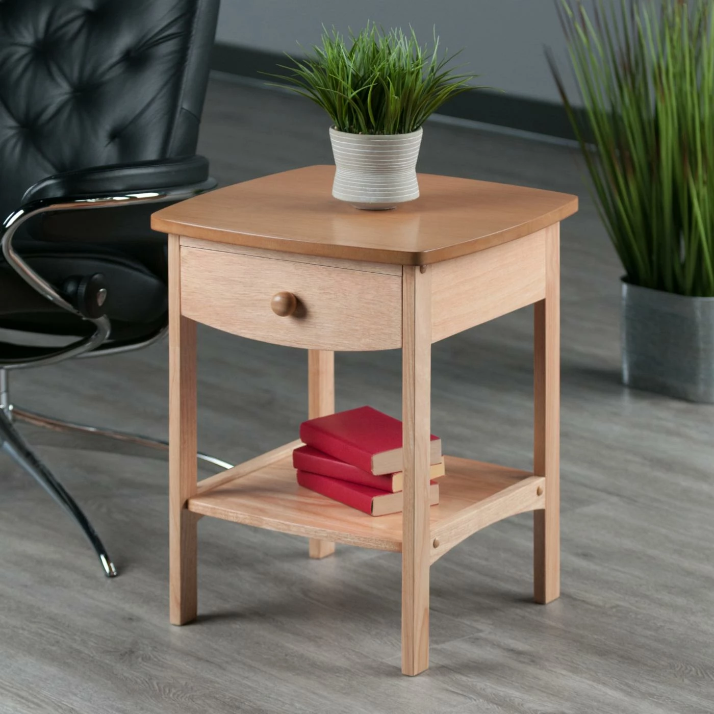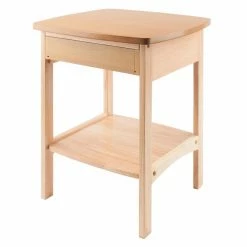 Sometimes, simple furniture is perfect furniture. Perfect example? The Winsome Belmont End Table. This beechwood end table is made of solid and composite wood and has a light natural finish. A single drawer with a round wooden knob provides storage, while a lower shelf is ideal for holding books or displaying small treasures. The square tabletop has slightly curved edges and a large surface for lamps or vases. This table stands 22 inches high and is designed to stand next to a sofa or chair, but it would also work well as a bedroom nightstand.