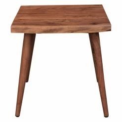 Rustic flair meets mid-century design with the Worldwide Home Furnishings Solid Wood Live Edge Accent Table. This stylish accent table is handcrafted from solid acacia wood with splayed legs and a rich walnut finish that highlights the distictive aspects of each unique piece.