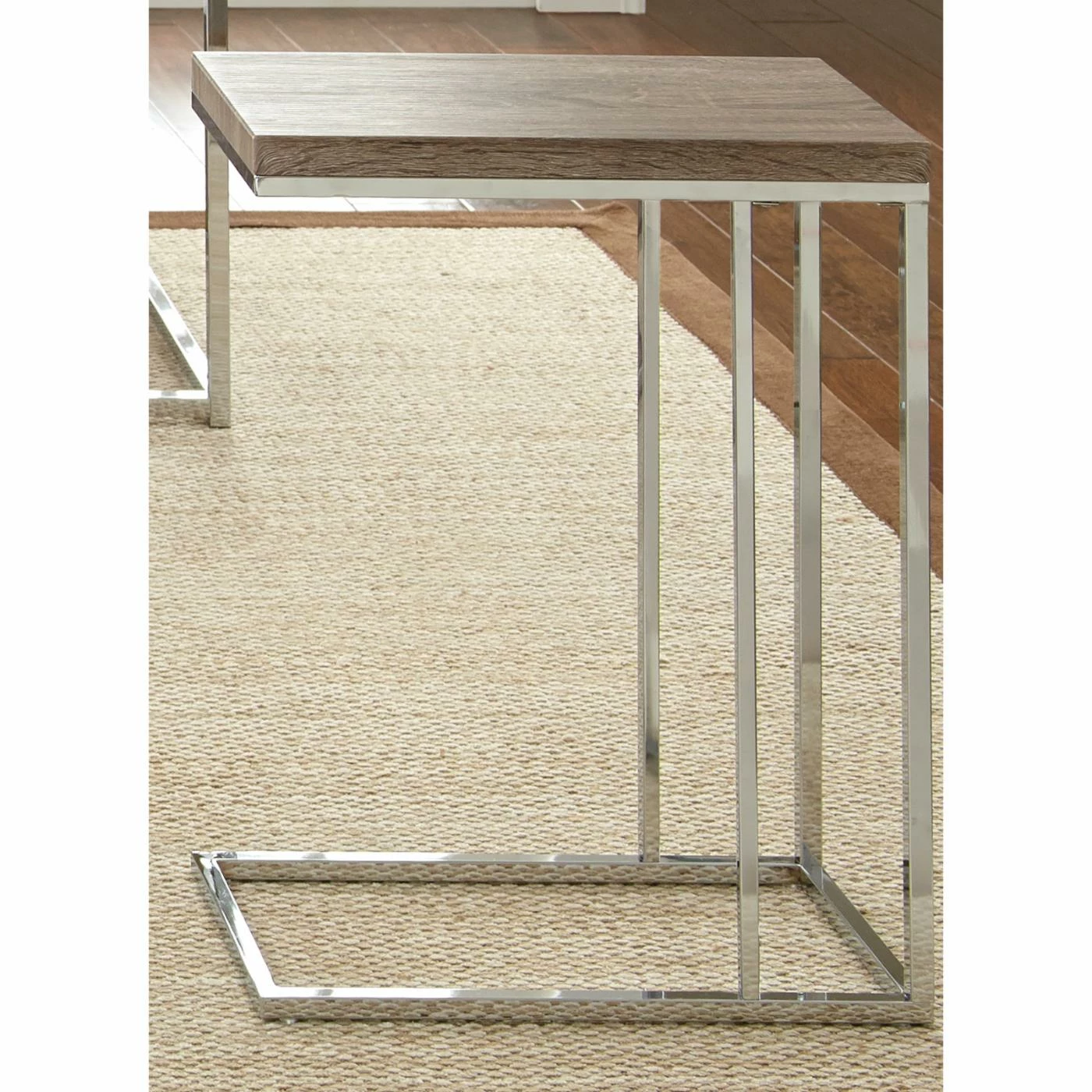 The Steve Silver Lucia Chairside End Table – Light Driftwood Gray lets you have a chair-side companion without wasting valuable floor space. This end table features a tall L-shaped design that lets you set down your book, drinks, and more at a convenient proximity and height. The frame is constructed from thick, durable metal with a wide, counter-balancing base and features a handsome polished chrome finish. The table surface features wood grain texture and a light driftwood gray finish. Sturdy, Silvershield 3D PVC laminate is used to create the table-top, durable and resistant to heat, moisture, and scratches.
