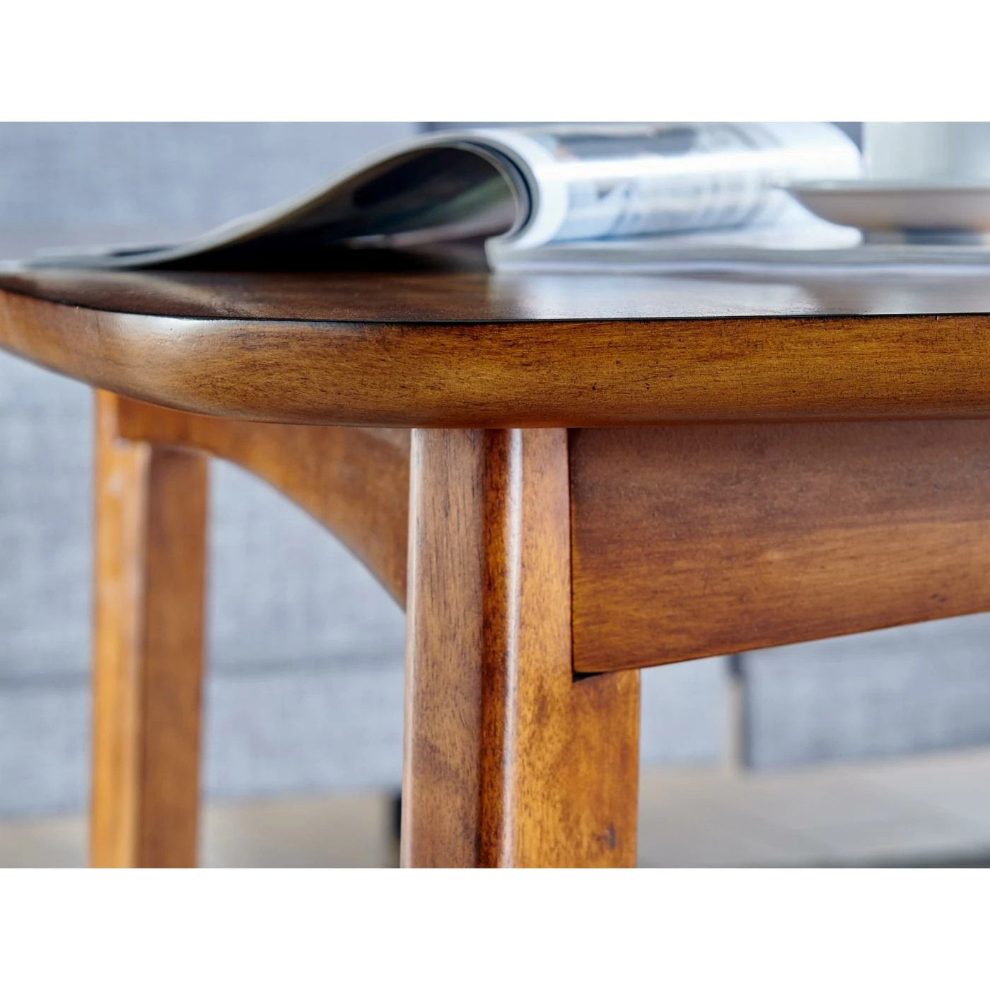 Dare we say these tables are a modern take on mid-century modern design? With their tapered legs and warm chestnut finish you will have the perfect accent to update your living space. This set of two nesting tables is the perfect side or accent table for any space. The unique, triangle table top design is a fresh take on a classic nesting table.