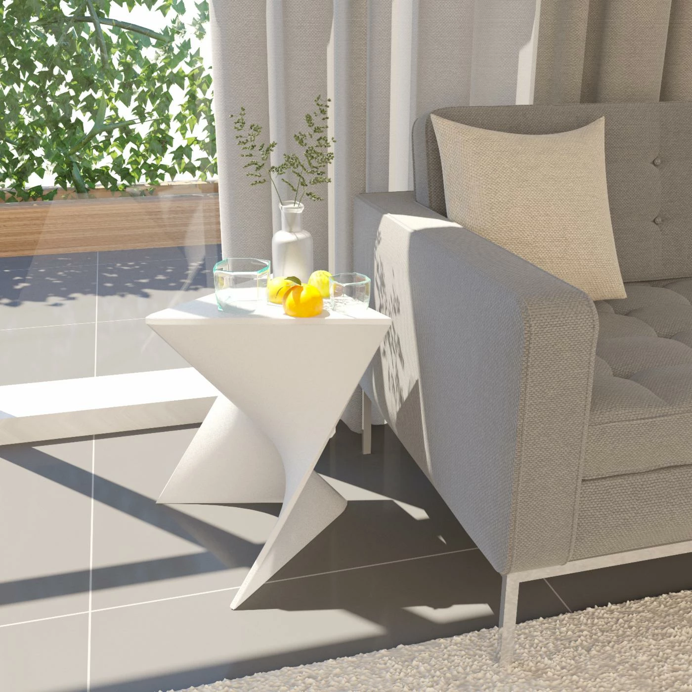 Make your space feel ultra-modern with the LeisureMod Randolph Vanity Side Table, which features a triangular shape with specialty curves. It has an integrated footrest that you can also use as a platform for your magazines. This plastic table is multifunctional and can be used as a stool, foot rest, or plant stand. Plus, you can use it outdoors on the patio, in the garden, or poolside.